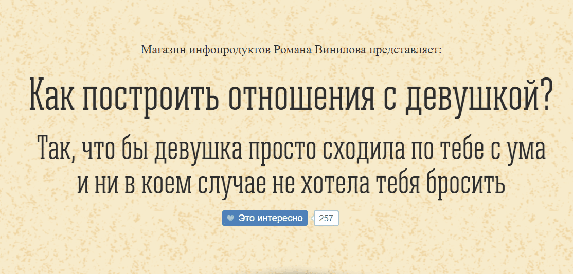 Описание. Может быть, вы уже знаете Романа Винилова по курсам о возврате бывшей девушки или жены. Да, автор выпустил целую серию программ на эту тему, которая пользуется бешеным успехом.