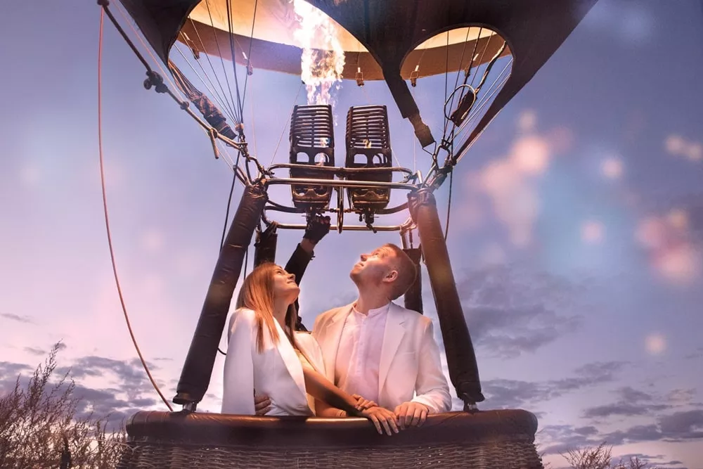 Полет проходит на рассвете или в лучах закатного солнца, именно в это время нет сильных порывов ветра. Закройте глаза и представьте: большой яркий купол над головами, вас поднимает в небо залп огня, вы парите в воздухе на высоте птичьего полета или несетесь навстречу облакам со скоростью до 125 км/час.