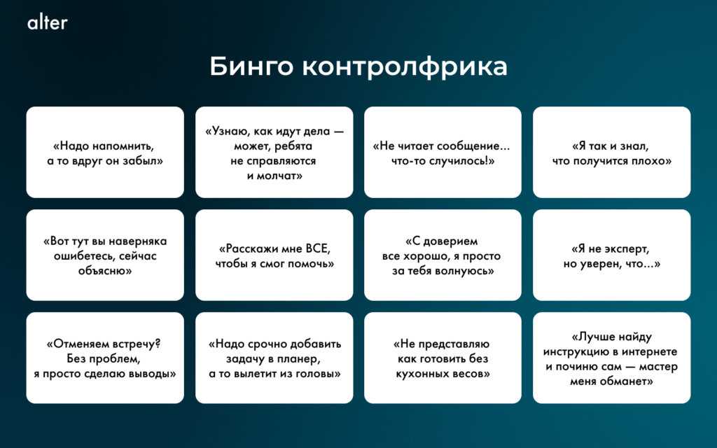 Мы составили бинго типичных мыслей контрол-фрика: это поможет определить, насколько вы склонны к навязчивой идее абсолютного контроля.