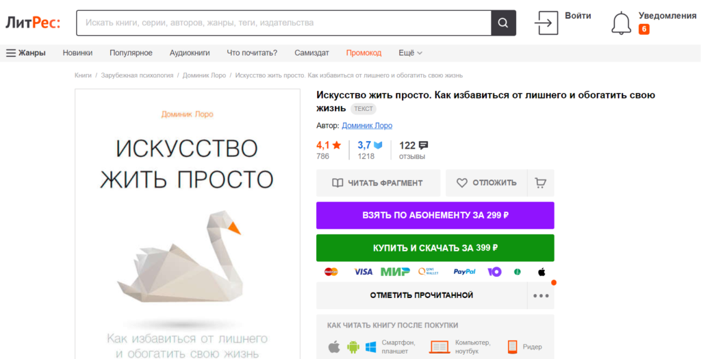 Описание книги: французское искусство жить, помноженное на философию дзенбуддизма и японский минимализм, — так выглядит рецепт счастливой жизни, наполненной смыслом, который предлагает Доминик Лоро.