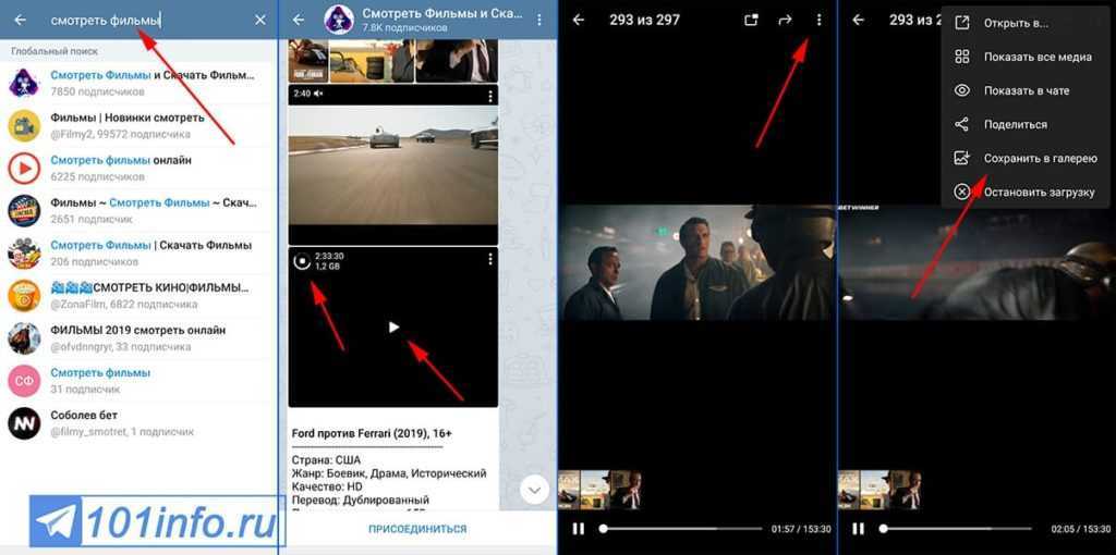 - Нажать лупу Telegram – вводим «смотреть фильмы»;