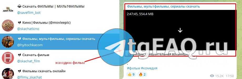 - Либо в группе, или в Телеграм боте найти нужный кинофильм.