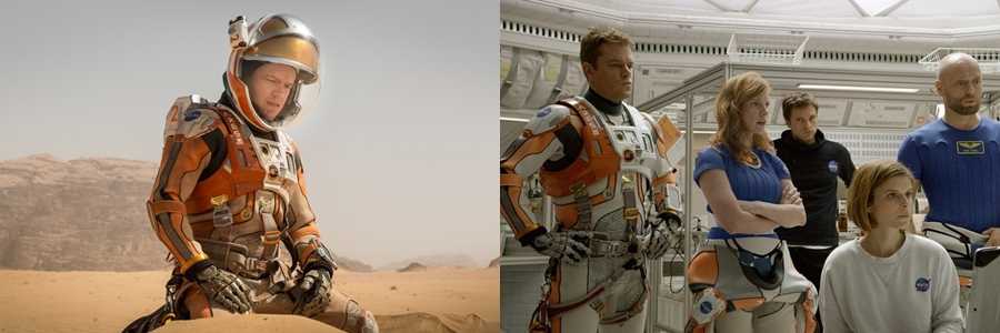 Главный герой ленты Марк Уотни в составе исследовательской экспедиции работает на поверхности Марса. Но из-за надвигающейся бури миссию в срочном порядке приходится сворачивать. В результате трагической случайности Марк остается на красной планете. Так же как и отважным исследователям из фильма Кристофера Нолана, ему предстоит в одиночестве провести несколько лет до прибытия спасательной миссии. Забавным совпадением является и тот факт, что главные роли в «Марсианине» исполнили Мэтт Деймон и Джессика Честейн, сыгравшие в «Интрестелларе» профессора Манна и повзрослевшую Мерф Купер.
