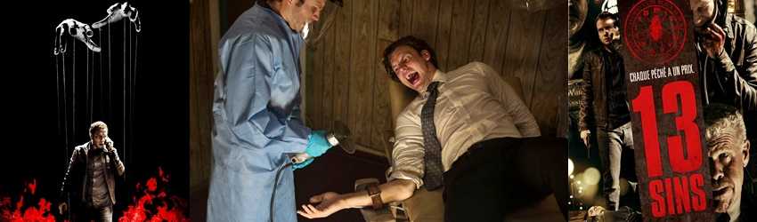 «13 грехов» – пугающий фильм в списке жанра ужасы. Эллиот Бриндл находится на грани нервного срыва. У парня куча долгов, из-за которых он не может сделать предложение руки и сердца любимой девушке. Депрессия изнутри «съедает» молодого человека. В момент наивысшего отчаяния он получает странный телефонный звонок. Голос из трубки сообщает, что Эллиот стал одним из игроков в популярном ток-шоу. Эллиоту нужно выполнить 13 заданий, и тогда он может заработать более шести миллионов долларов. Искушение оказывается сильнее здравого рассудка, и герой с огромным презрением выполнил 2 первых задания – убил, а затем съел муху. Эллиот увидел, что на его банковский счет действительно перечислили деньги. Бриндл продолжает выполнять и следующие задания. Как далеко заведет Эллиота его одержимость?