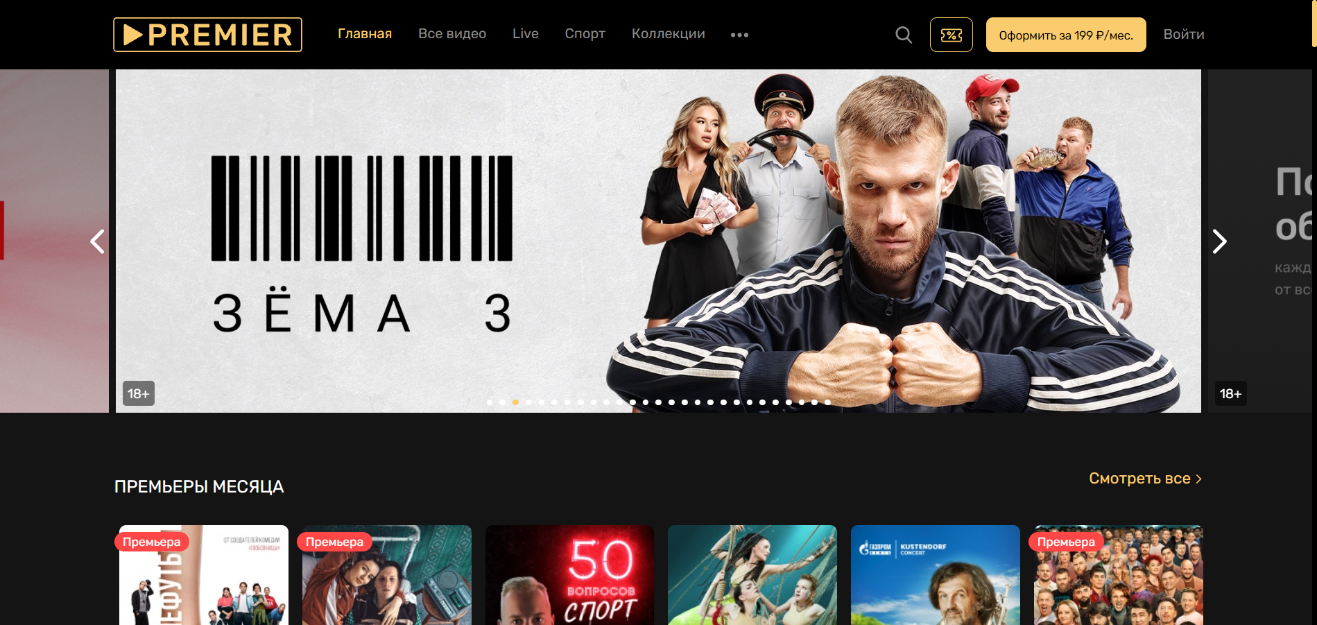 На рынке кинопроката и многоканального ТВ приложение TNT Premier появилось в августе 2018 года. Через год сервис немного модифицировал свое название, убрав приставку ТНТ. Теперь он называется просто Premier. Эта российская ОТТ-платформа принадлежит «Газпром-медиа» и пользуется популярностью преимущественно у российской аудитории. Уже в первый месяц работы, чтобы смотреть ТНТ Premier, россияне установили приложение на 830 000 девайсах.