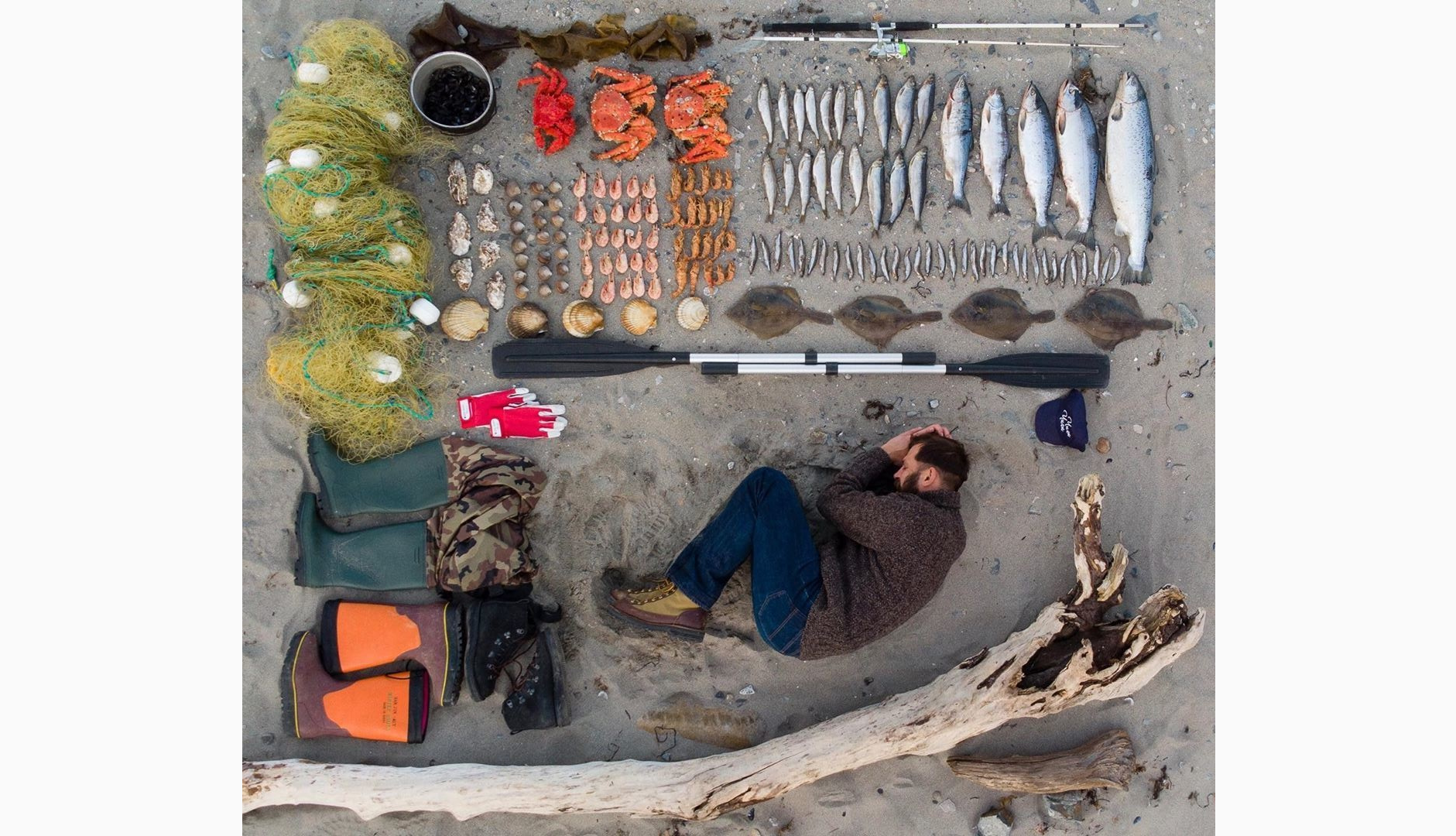 Главное правило — на фото весь инвентарь должен лежать аккуратно по прямым линиям рядом с вами, так чтобы получился прямоугольник. Суть — уложить в одном снимке всю свою работу. Само фото должно быть сделано сверху. Например, с квадрокоптера или из окна здания.