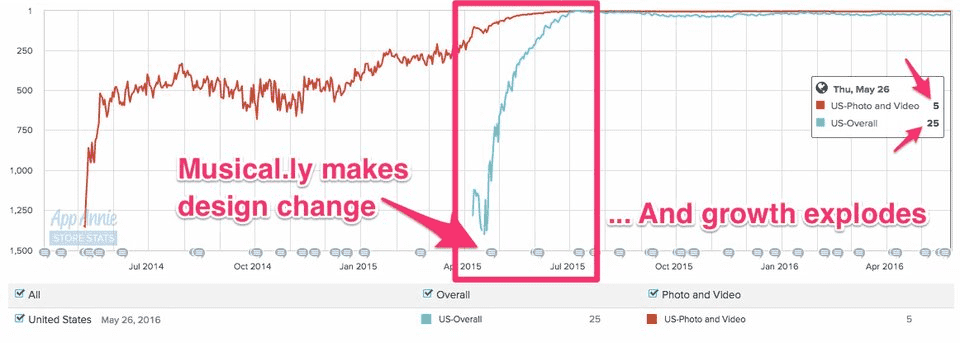 После этого наблюдения создал Musical.ly — караоке-приложение. Пользователь может записать 15-секундный ролик под фонограмму, поделиться им в любой социальной сети. Уже в первый день запуска программа заинтересовала 500 человек. Приложение на протяжении 10 месяцев развивалось, но очень медленно. И рекламодатели придумали выгодный выход — в каждое видео, снятое пользователем, вставить логотип приложения. Число юзером после такого решения значительно выросло. Сервис программа помогает известным певцам продвигать свои альбомы.