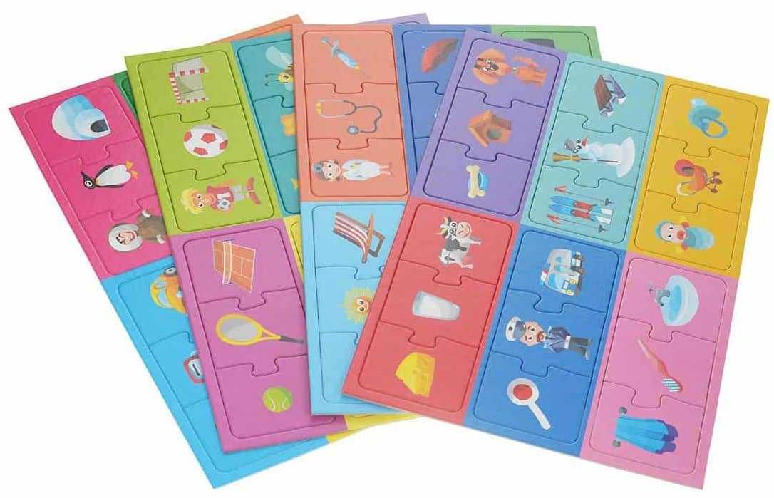 Все карты выкладываются на столе или любой другой плоской поверхности в открытом виде. Если участвуют несколько игроков, убедитесь, что все могут дотянуться до картинок. Когда все карты выложены, вы должны начать поочередно искать тройные сочетания. К примеру, сыр=молоко=корова.