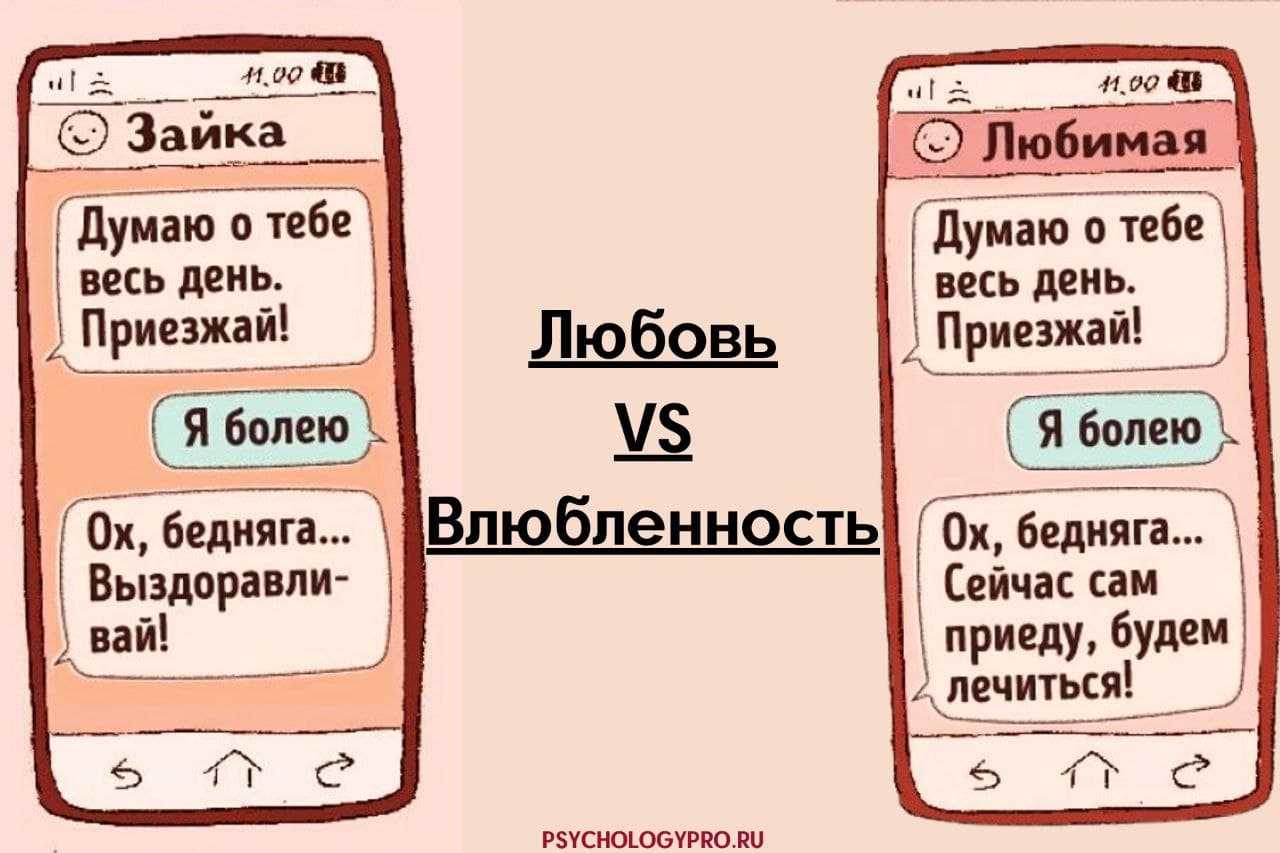 - Влюбленность — начало зарождения чувств, эйфория и чрезмерная привязанность.