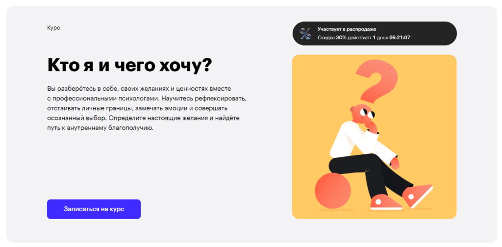 На онлайн-курсе от Skillbox вы разберетесь в себе, своих желаниях и ценностях вместе с профессиональными психологами. Научитесь рефлексировать, отстаивать личные границы, замечать эмоции и совершать осознанный выбор. Определите настоящие желания и найдете путь к внутреннему благополучию.
