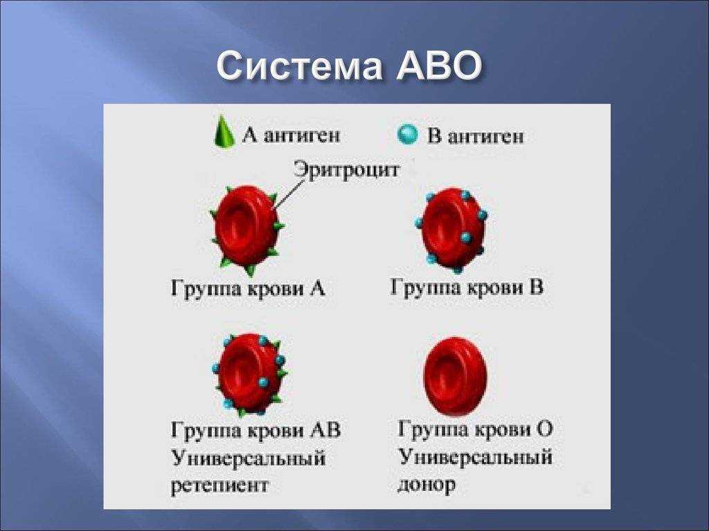 Система АВ0 открыта Карлом Ландштайнером в начале двадцатого века. В ней предусмотрено разделение групп биологических жидкостей исходя из присутствия антигенов. У людей со вторым типом на мембране эритроцитов располагается вещество А, а у людей с третьим – В. При четвертом типе объединены оба антигена, при первой их нет. Антитела всегда образуются против отсутствующих в антигенов.