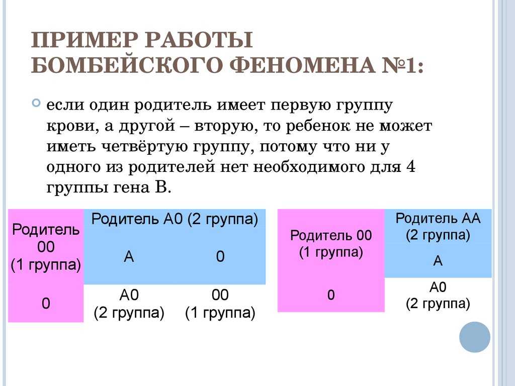 В настоящее время известно существование так называемого Бомбейского феномена, открытого учеными в 1952 году. Его суть заключается в том, что у человека определяется групповая принадлежность крови, которая по законам генетики невозможна, каково его объяснение и причина следствия. То есть на мембранах его эритроцитов присутствует агглютиноген, которого нет ни у одного из родителей.