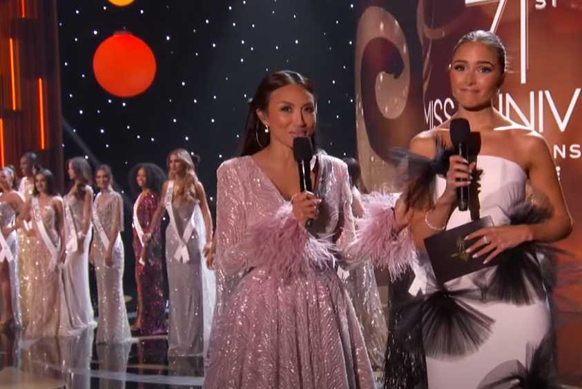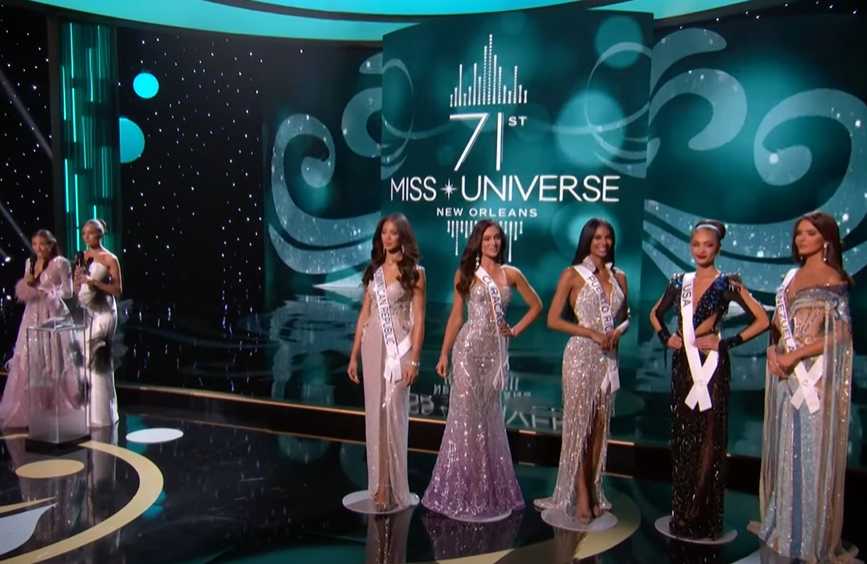 В начале, на сцене отеля “Hyatt Regency”, были представлены 20 финалисток конкурса Мисс Вселенная 2023 года, а вели 71-ю церемонию — 30-летняя модель Оливия Калпо и 44-летняя телеведущая Дженни Мэй.
