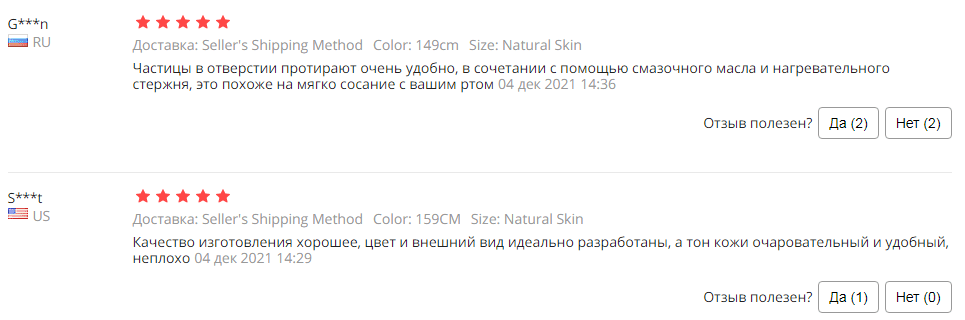 Реальные отзывы: мужчины отмечают реалистичные ощущения от прикосновений и секса, отсутствие специфического запаха. С сайта Алиэкспресс: