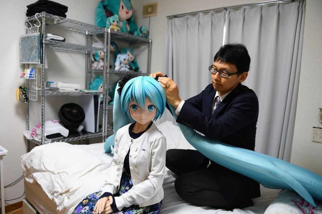 Акихико Кондо дома в Токио с куклой в натуральную величину Хацунэ Мику, виртуальной поп-звездой, на которой он женился в 2018 году. Что случилось с японцем, который «женился» на виртуальной милашке Хацунэ Мику?