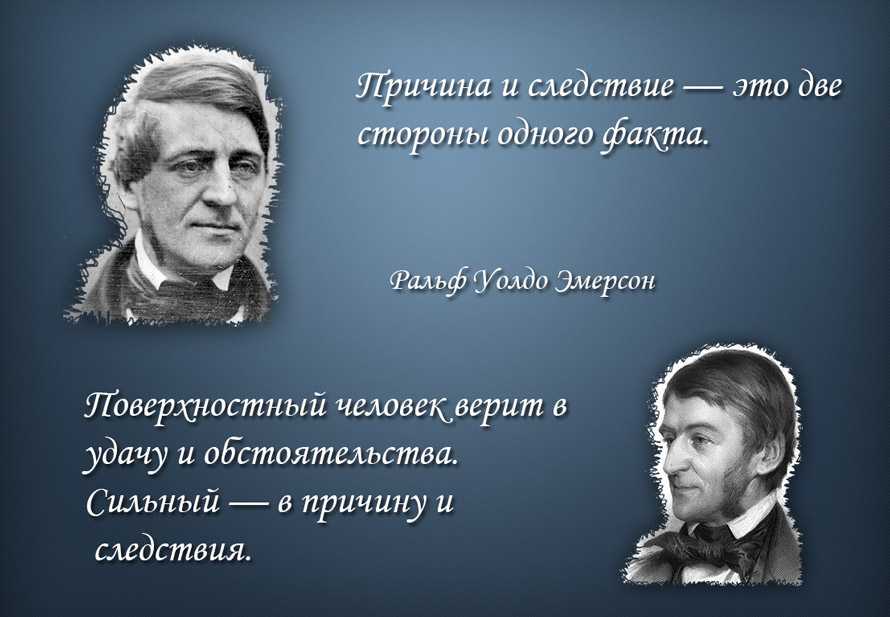 Слабые люди верят в удачу, сильные — в причину и следствие.Ралф Эмерсон.