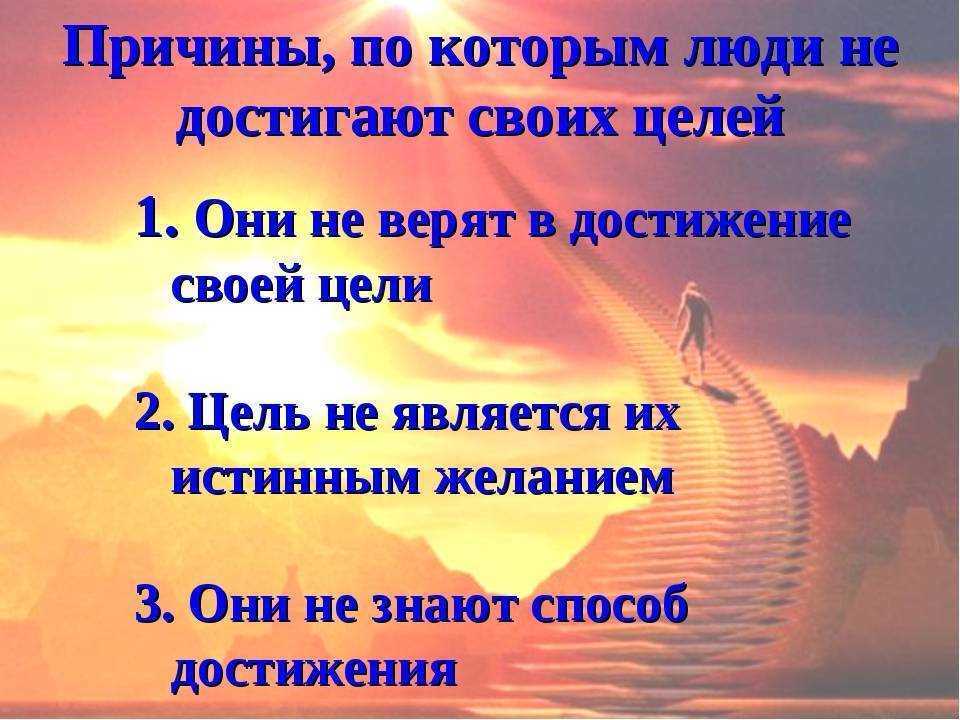 А помогать в этом может поставленная человеком цель. Разумеется, у каждого она будет своя и разная по объему. Многие люди, не рассчитав свои силы, ставят перед собой заведомо не достижимую цель. Потом сильно расстраиваются из-за неудачи, впадают в какую-то депрессию и в итоге опускают руки для будущих стремлений. Так случается очень часто.