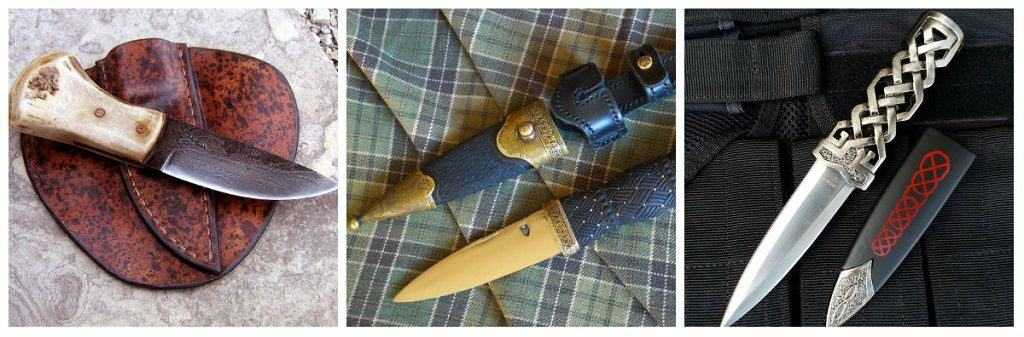 - sgian dubh (с гэльского — «черный нож»: небольшой нож в ножнах, который носят в верхней части ремня);