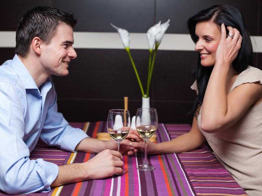 Заинтересованный мужчина смотрит девушке в глаза, не сидит с отсутствующим видом. Он может слегка придвинуться к собеседнице.