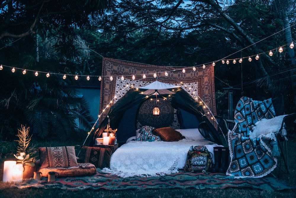 - прохладная погода – не повод отказываться от атмосферы живой природы вокруг. Расстелите плед на полу, поставьте вокруг горшочки с цветами, корзинку для пикника, зажгите свечи с ароматом трав, чтобы максимально реалистично воплотить идею.