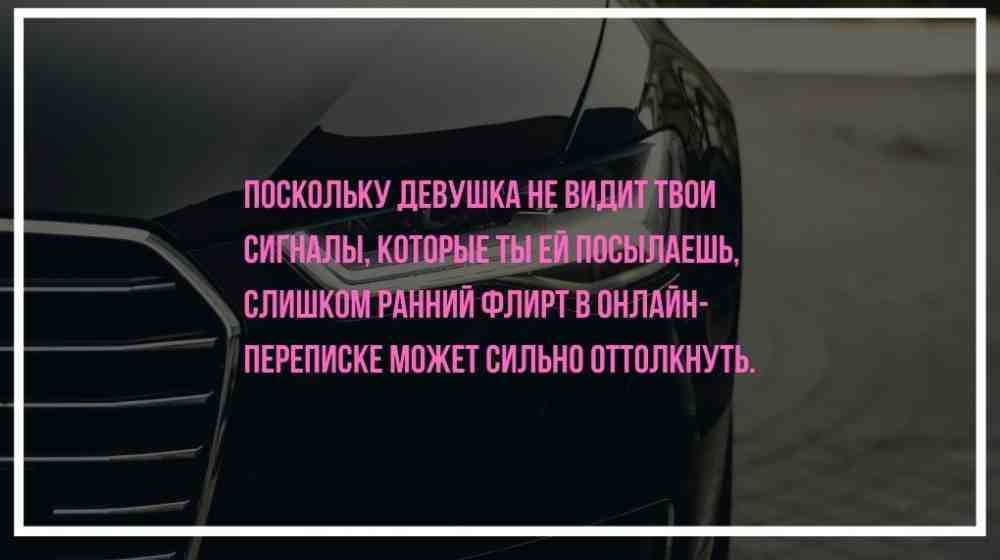 Поскольку девушка не видит твои сигналы, которые ты ей посылаешь, слишком ранний флирт в онлайн-переписке может сильно оттолкнуть.